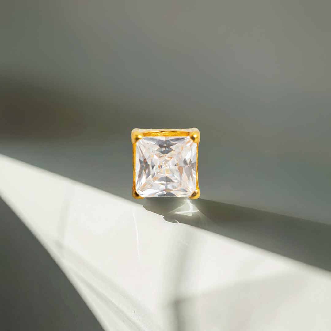 El piercing Cristal cuadrado engarzado en oro pvd destaca por su diseño moderno y elegante. Gracias a su forma geométrica y al brillo del cristal cz, ilumina cualquier perforación con estilo y sofisticación.