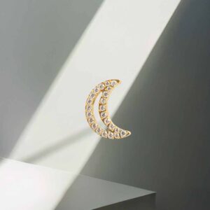 El modelo cuenta con rosca interna, lo que facilita la colocación y evita daños en el tejido. Además, está disponible en grosor 16G (1.2 mm), una medida estándar y cómoda. El centro incorpora un cristal cz, que aporta un destello brillante y delicado. Con estas características, el piercing combina funcionalidad y estética.