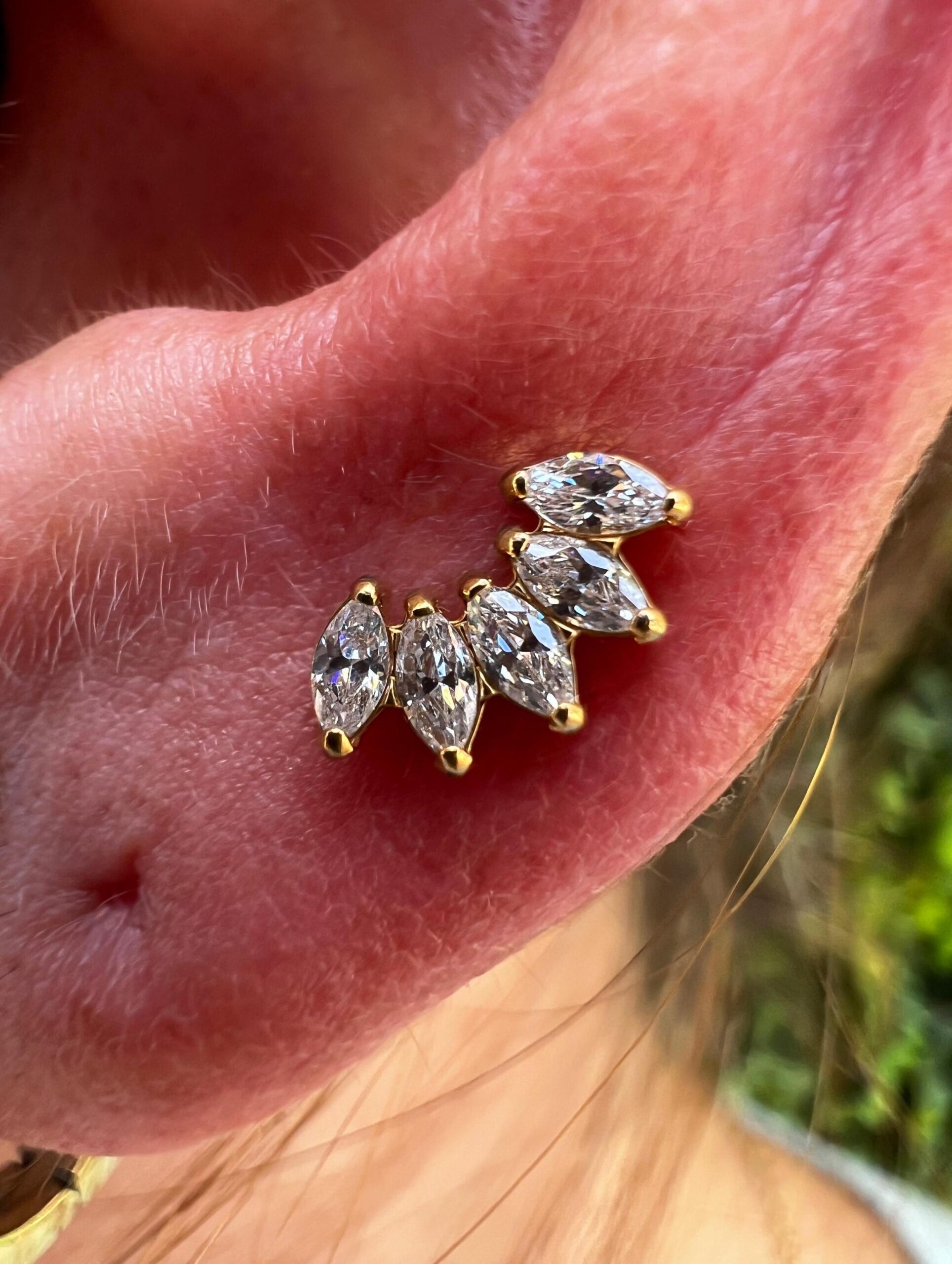 Marquise 5 puntas (oro PVD), ASTM F-136 Titanio grado implante