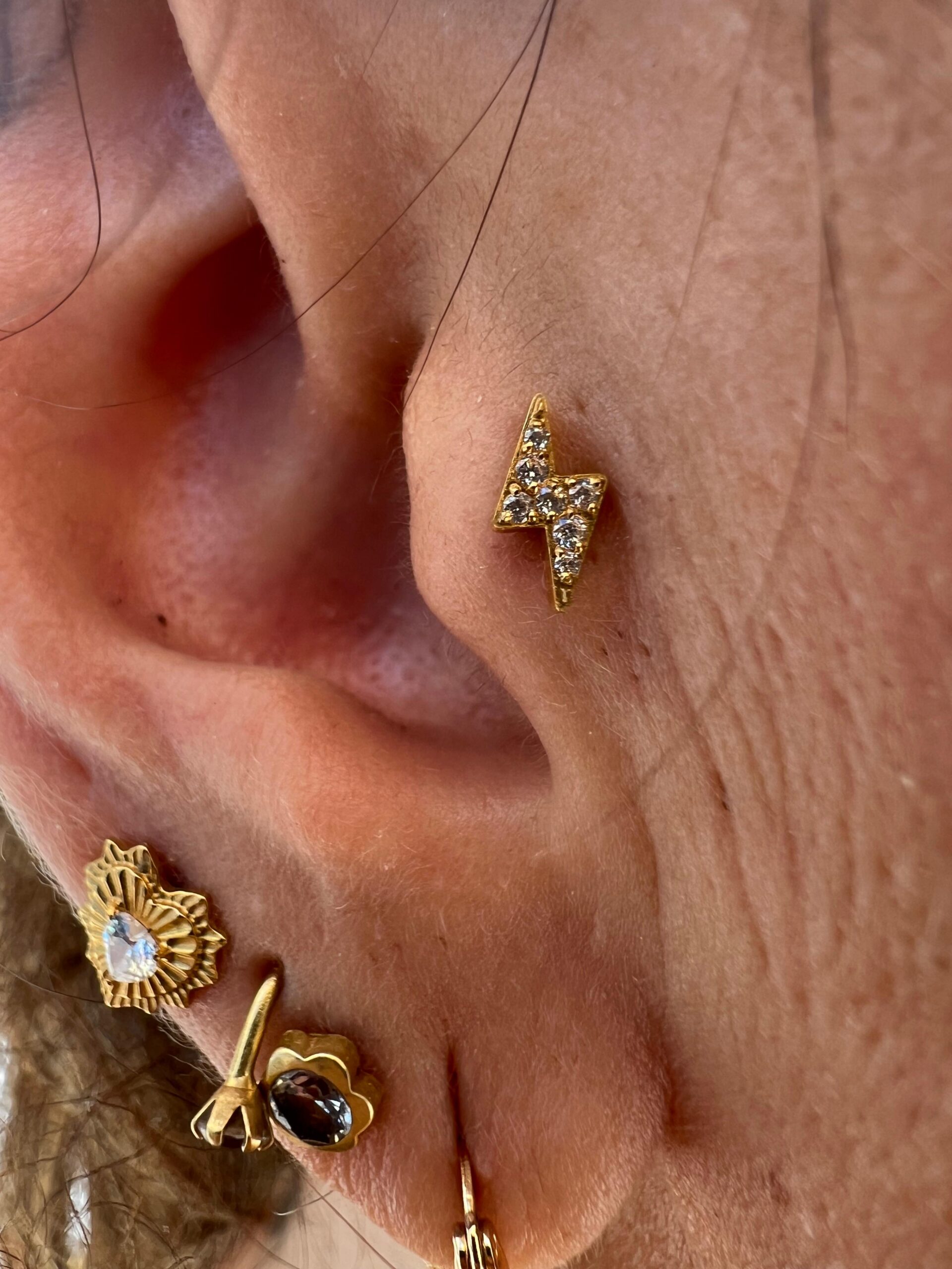 El diseño en forma de rayito aporta dinamismo y personalidad a tu look. Por ello, se adapta tanto a piercings de oreja como a otras perforaciones compatibles. Además, el recubrimiento en oro pvd garantiza un acabado resistente y brillante. Así, disfrutas de una pieza original y duradera.